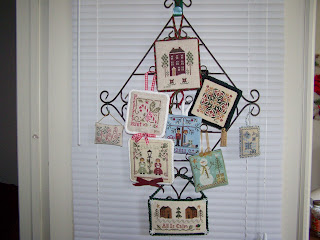 Displayed ornaments stitched and not given as gifts. I have to keep some for myself, right.