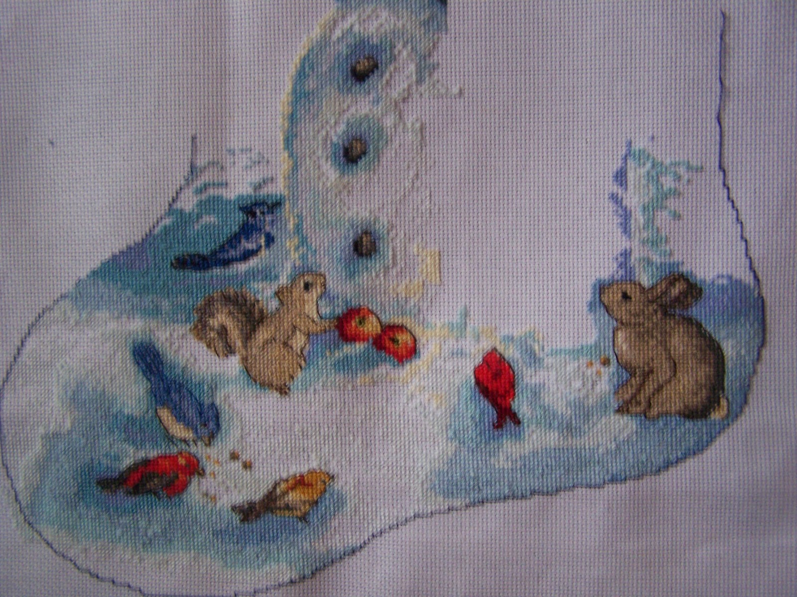 stitching it on light blue 14 ct Aida